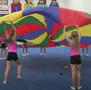 Shown are 64 parachute games that work the upper body including the arms and shoulders (and lungs from laughing). These super fun parachute games are guaranteed to put a smile on the face of every child who participates. Parachute games add color, fun, and excitement to any class. Some games included are: Steal the Bean Bag, Mummy Wrap Up, Mountain Time, and Go Fly a Kite (40 min. video & 4-page eBook).